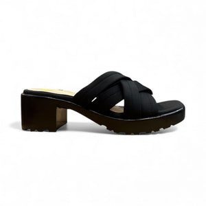 Step into subtle sophistication with Velvet Crosswalk. These black crisscross sandals blend soft fabric straps with a low, block heel for all-day comfort and effortless style. Ideal for semi-formal outings or polished casual looks.