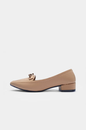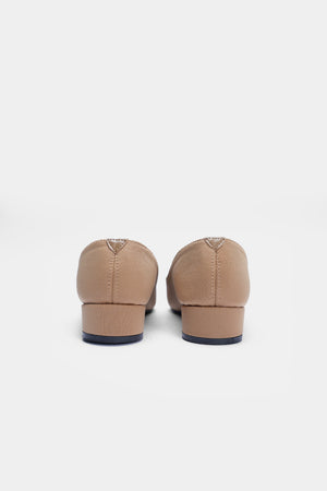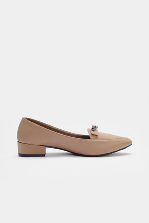 Step into understated elegance with these chic beige flats, designed for both comfort and sophistication. Featuring a sleek pointed toe and a low block heel, these shoes offer a refined silhouette perfect for everyday wear or casual outings. The textured upper adds subtle depth, while the metallic buckle detail on the front elevates the look with a touch of glamour. Crafted with a durable dark sole, they blend style and practicality effortlessly—ideal for pairing with trousers, skirts, or even tailored denim