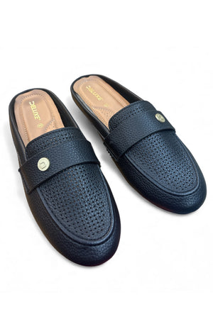 Crafted with a balanced mix of texture and elegance, these pumps stand out with a golden metal detail on the vamp. Designed for comfort and versatile wear.