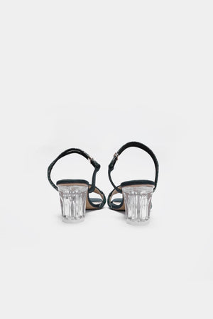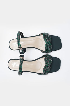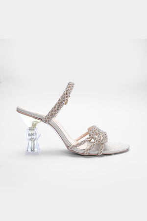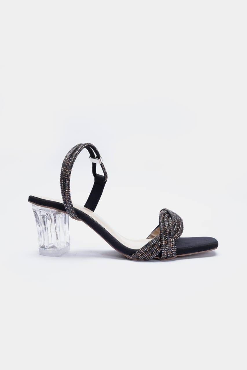 Step into refined glamour with LuxeTwist—a heeled sandal that blends metallic braided straps with a sleek black footbed. The transparent block heel adds a modern edge, while the adjustable ankle buckle ensures a secure, graceful fit. Perfect for evening wear or upscale events.