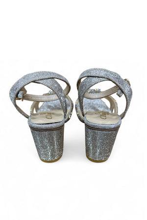 Step into shimmer with Silver Sway—a dazzling sandal designed for comfort and celebration. The glittery finish catches every light, while the crisscross straps and block heel offer graceful stability from dusk till dancefloor