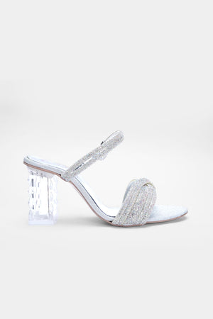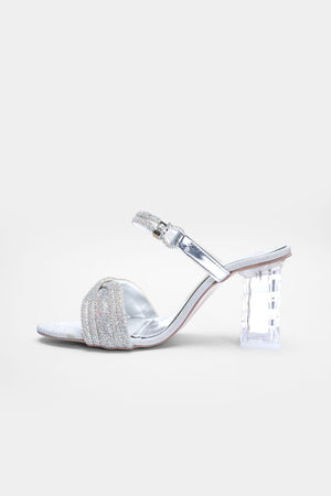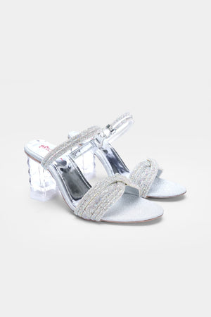 Bold & Trendy Make a statement in Crystal Braid—a sandal that blends shimmer with structure. The chunky clear heel and metallic silver base scream modern glam, while the glittery toe strap adds just the right touch of drama. Designed for fashionistas who never blend in.