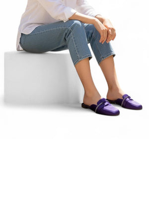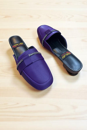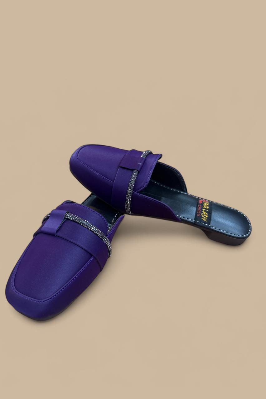 Make a statement in Purple Pulse. With a sleek square toe and dazzling crystal band, these slip-ons are your shortcut to effortless chic—whether you're dressing up denim or adding polish to a kurti.