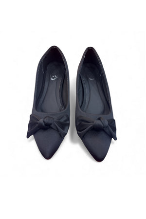 Step into timeless elegance with Velvet Noir—a pointed-toe dress shoe crafted from textured fabric, finished with a delicate bow and cushioned insole for all-day comfort. Perfect for formal evenings and polished office looks.