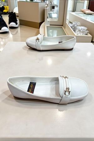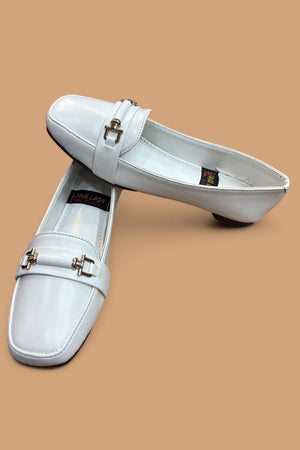 Step into understated elegance with Ivory Bit Charm—a polished white loafer featuring gleaming horsebit hardware and a sleek silhouette. Designed for effortless sophistication, it’s your go-to for both boardroom finesse and weekend chic
