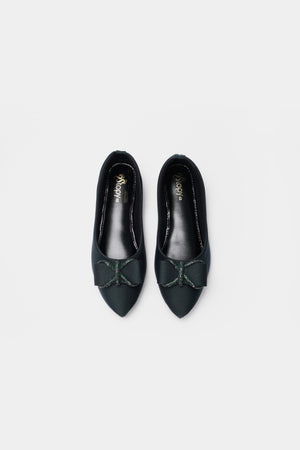 Let your style speak softly with Twilight Grace. Crafted for comfort and charm, these flats pair a classic profile with shimmering bow accents—ideal for strolls under city lights or cozy café moments.