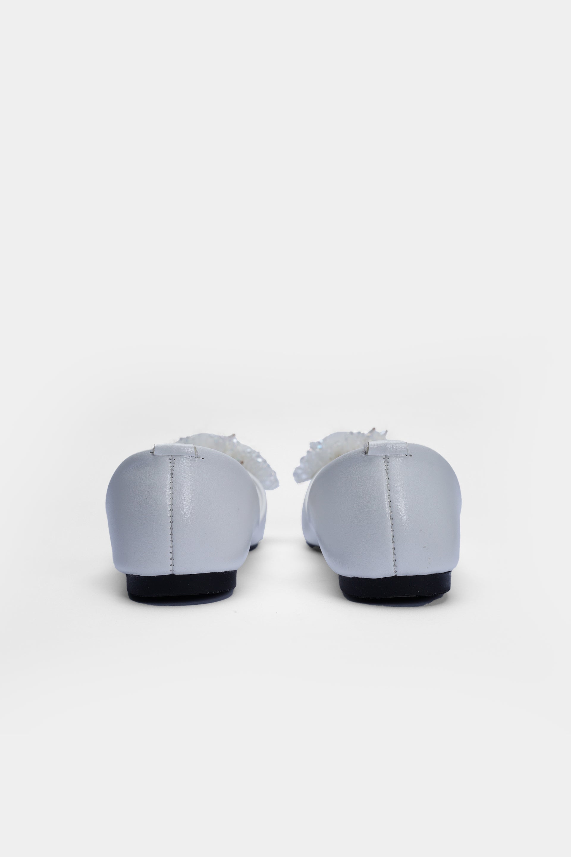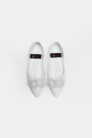 Step into timeless elegance with Ivory Bloom, a pair of pointed-toe flats adorned with delicate floral embellishments in translucent and white tones. Designed for the modern woman who values grace and comfort, these shoes feature a sleek silhouette and a smooth finish that pairs effortlessly with bridal wear, evening ensembles, or upscale casual looks. The dark sole adds subtle contrast, while the intricate detailing on the front makes every step feel like a statement.