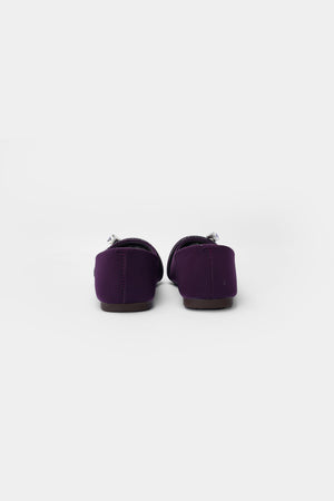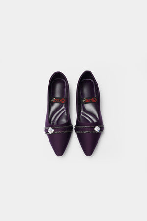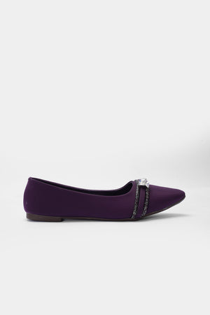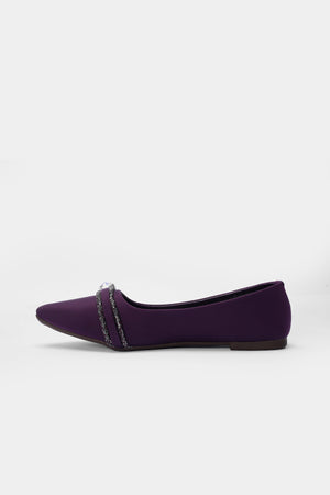 Step into sophistication with Velvet Eclipse, a pointed-toe flat that blends deep plum tones with luxe embellishments. A sleek black strap adorned with shimmering accents and a central crystal-like gem adds a touch of glamour, making this pair perfect for evening wear or upscale day events. Crafted for comfort without compromising style, these flats are your go-to for elegance on the move.