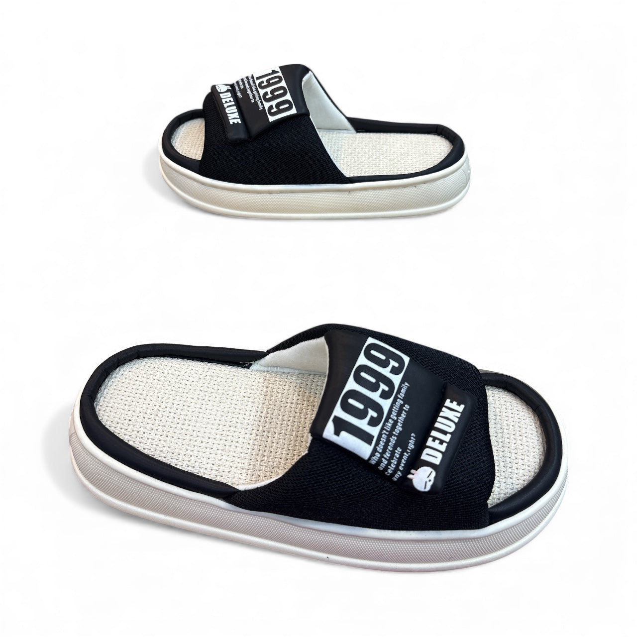 Step into inspiration with the FutureStep Deluxe Slippers—a stylish blend of comfort and motivation. These open-toe slippers feature a woven-texture footbed for a natural feel and a sleek black fabric upper printed with a bold message: