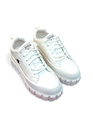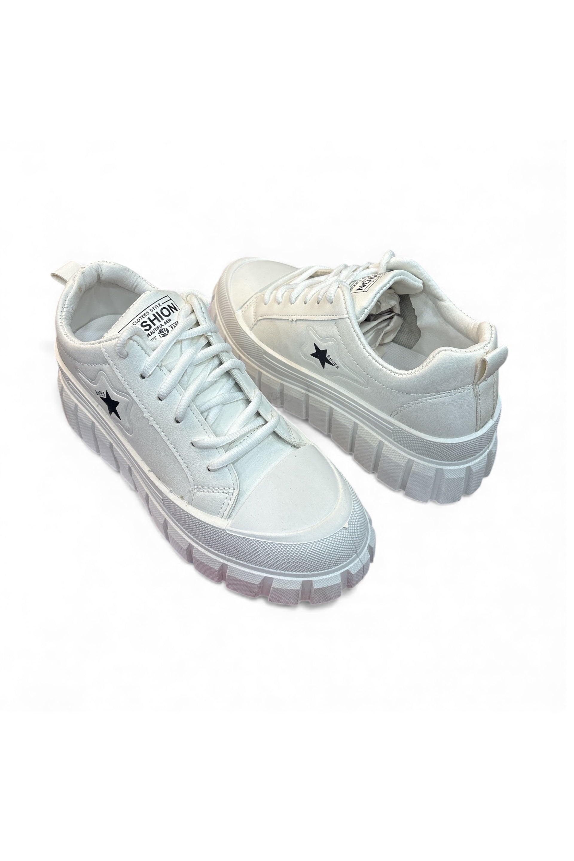 Step into sleek simplicity with StarStride White—low-top sneakers designed for everyday cool. Featuring a bold black star emblem and a chunky textured sole, these shoes blend street style with comfort. The “FASHION SPORT” tongue label adds a playful edge, while the all-white finish keeps it fresh and versatile. Ideal for casual outings, urban strolls, or pairing with your favorite jeans.