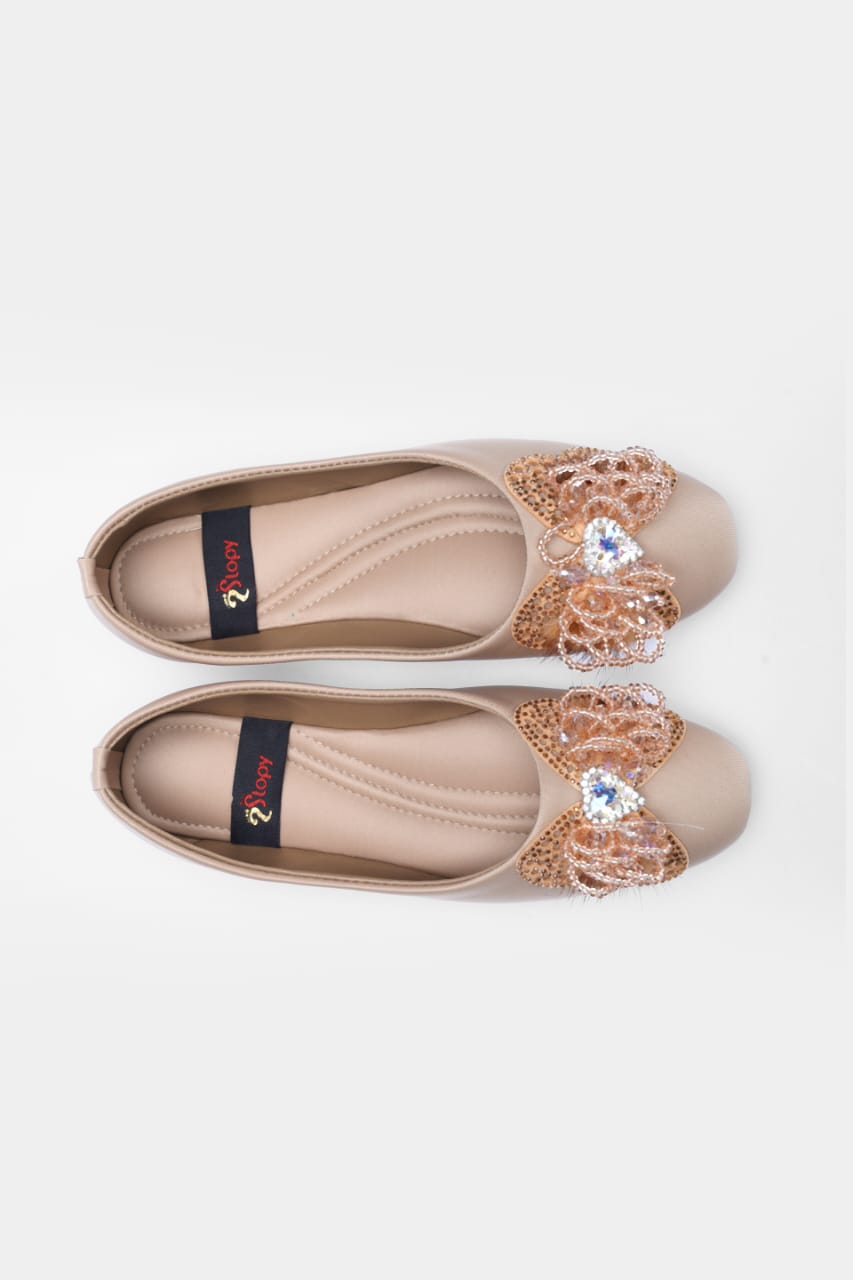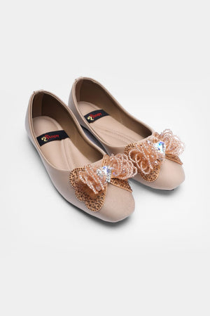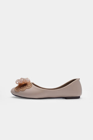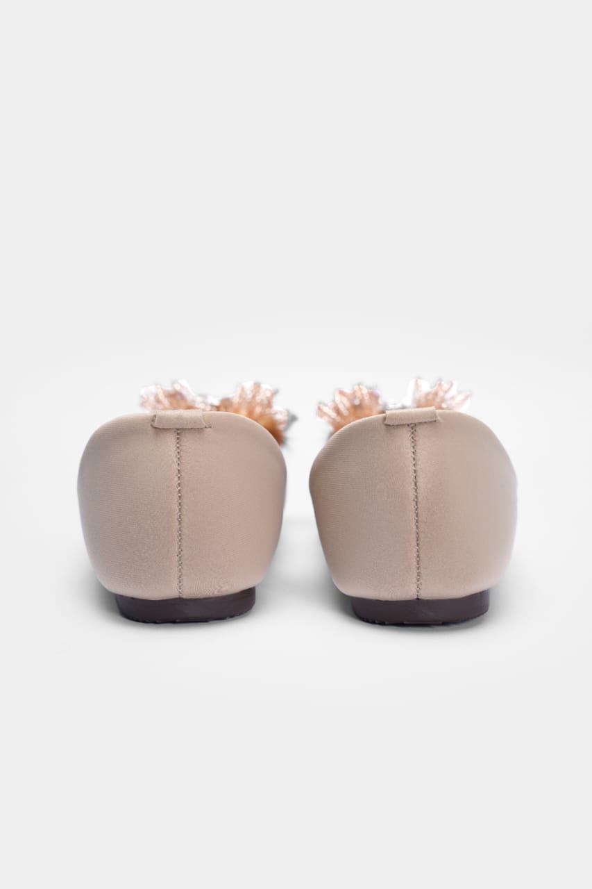 Step into subtle glamour with these beige Zappy flats, crowned by shimmering mesh bows and sequin sparkle. Designed for comfort and charm, they’re your go-to for effortless elegance—day or night